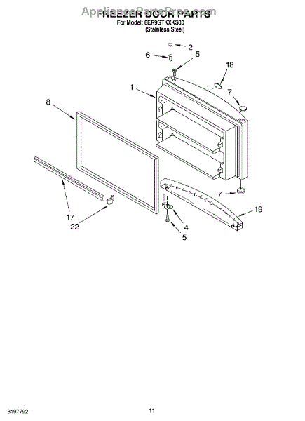 Magnetic freezer door gasket creates an airtight seal. Replace if door doesn't seal properly or shows cracks. Verify fit with your model number.