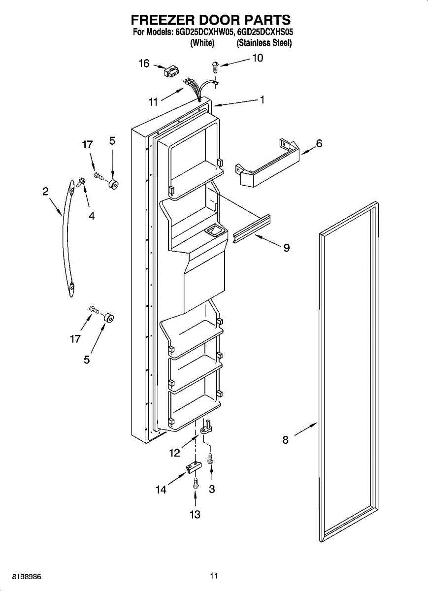 The Freezer Door Gasket is an OEM replacement part for Whirlpool refrigerators. It creates a tight insulating seal around the perimeter of the freezer door opening. The gasket helps maintain consistent sub-freezing temperatures inside by preventing cold air loss. Causes relate to natural compression fatigue over time, cracks developing with use, or accidental slicing/tears from sharp edges within the freezer. Symptoms of a compromised gasket include: