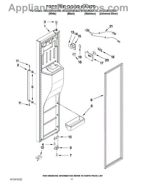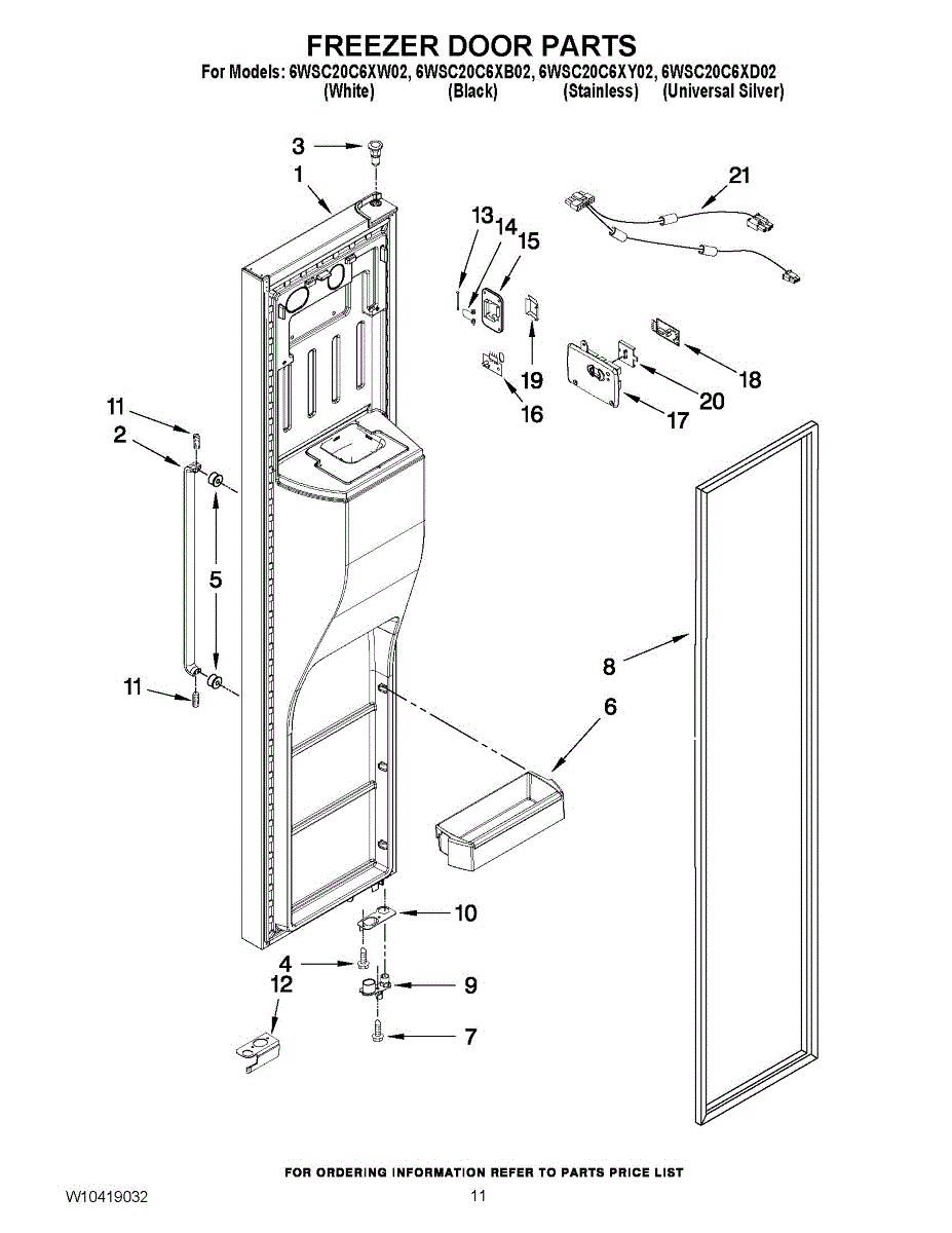 Parts for Whirlpool 6WSC20C6XY02: 07 - Freezer Door Parts