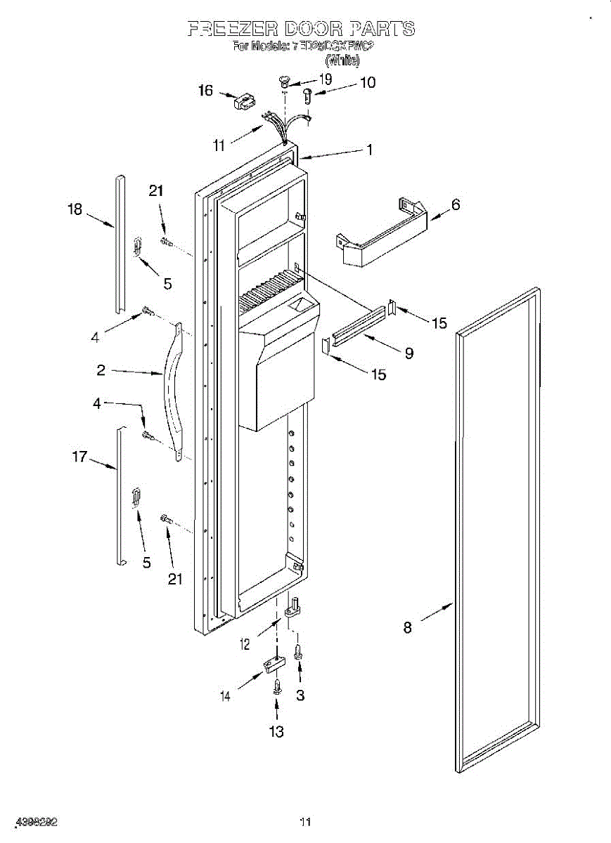 The Freezer Door Gasket is an OEM replacement part for Whirlpool refrigerators. It creates a tight insulating seal around the perimeter of the freezer door opening. The gasket helps maintain consistent sub-freezing temperatures inside by preventing cold air loss. Causes relate to natural compression fatigue over time, cracks developing with use, or accidental slicing/tears from sharp edges within the freezer. Symptoms of a compromised gasket include: