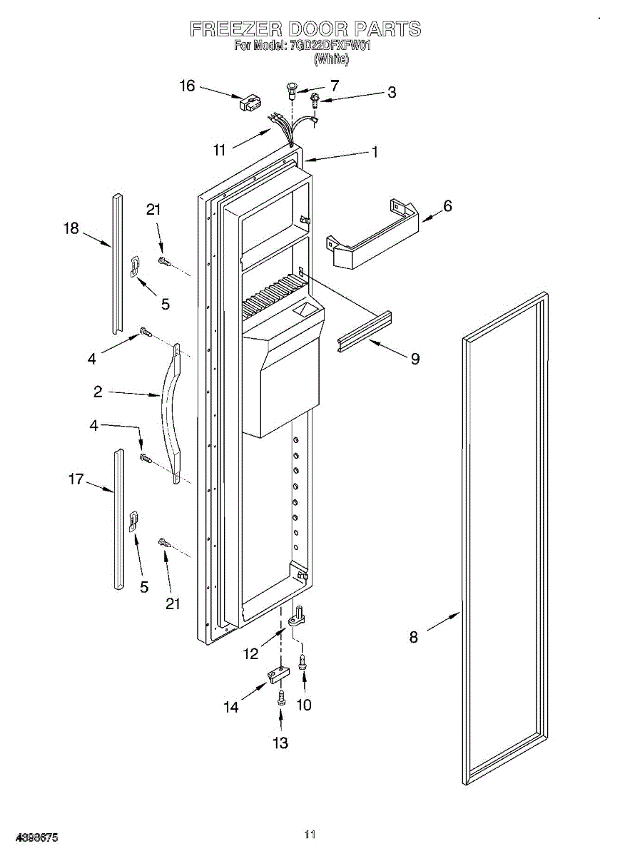 Parts for Whirlpool 7GD22DFXFW01: 08 - Freezer Door Parts
