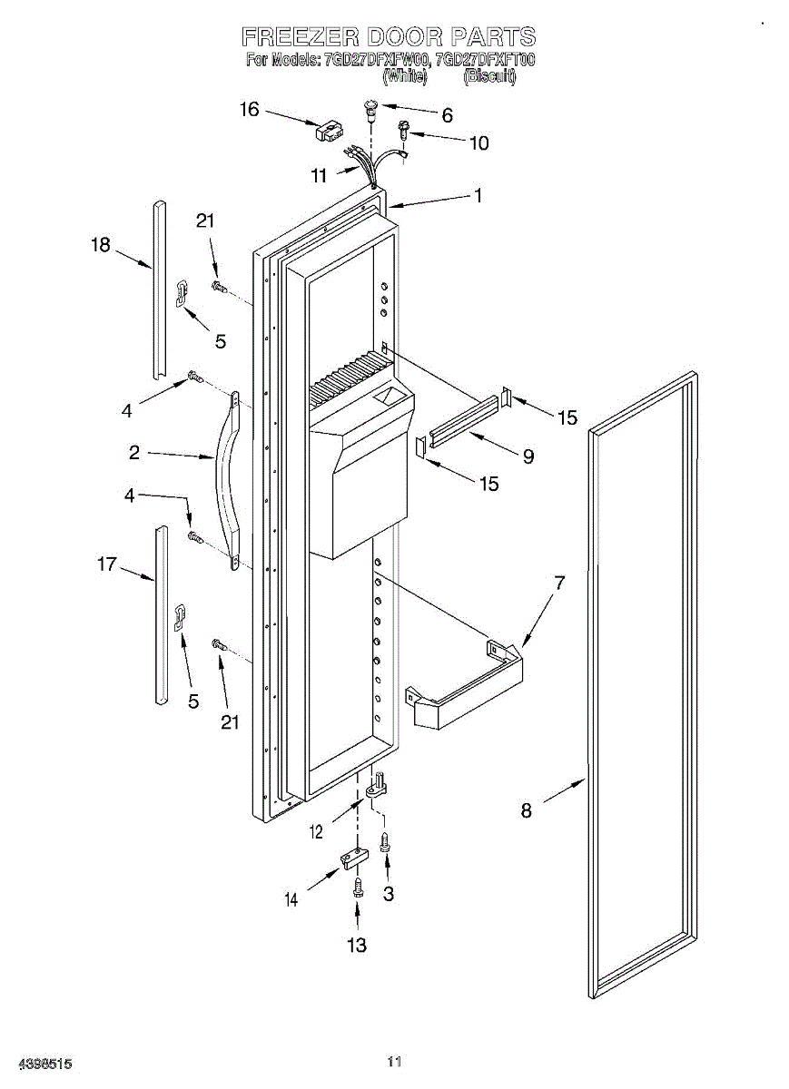 The Freezer Door Gasket is an OEM replacement part for Whirlpool refrigerators. It creates a tight insulating seal around the perimeter of the freezer door opening. The gasket helps maintain consistent sub-freezing temperatures inside by preventing cold air loss. Causes relate to natural compression fatigue over time, cracks developing with use, or accidental slicing/tears from sharp edges within the freezer. Symptoms of a compromised gasket include: