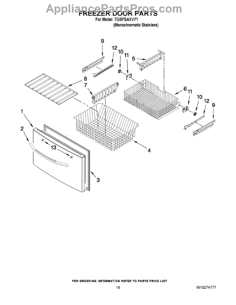 Parts for Whirlpool 7GI5FSAXVY1: 09 - Freezer Door Parts