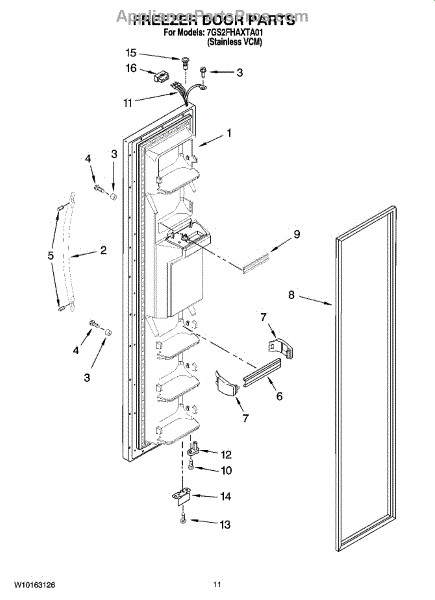 Parts for Whirlpool 7GS2FHAXTA01: 07 - Freezer Door Parts