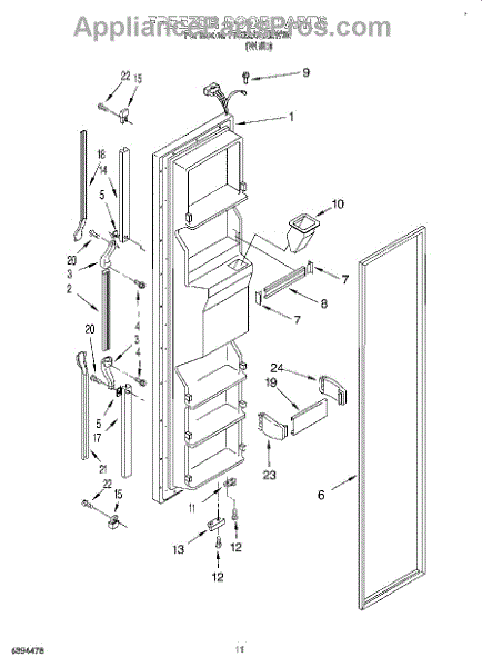 Parts for Whirlpool 7TS22AQXEW00: 08 - Freezer Door Parts