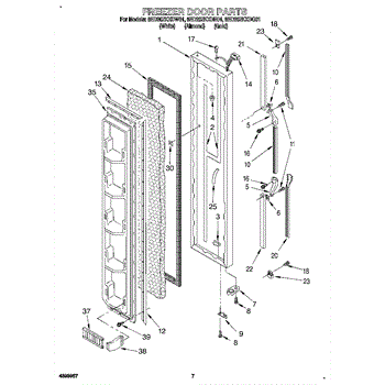 This freezer door gasket creates a tight seal around the door to keep cold air in and humid air out. Replacing a worn gasket restores proper temperature control, reduces frost, and helps the door close and seal correctly.