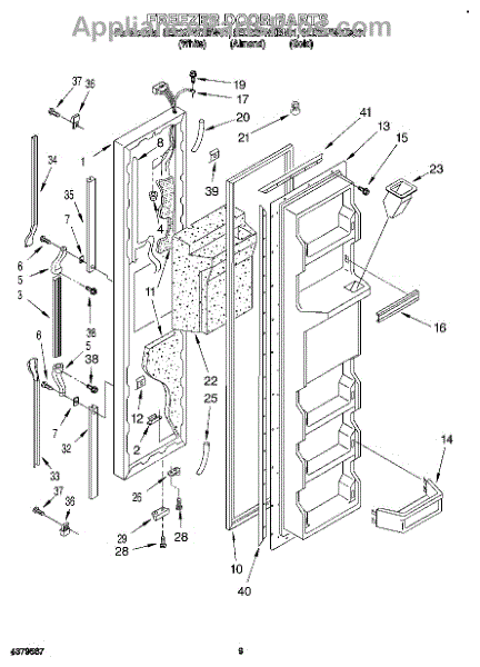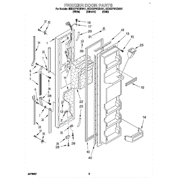 Parts for Whirlpool 8ED22PWXBW01: 07 - Freezer Door Parts