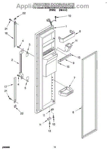 Parts for Whirlpool 8ED25DQXDW01: 07 - Freezer Door Parts
