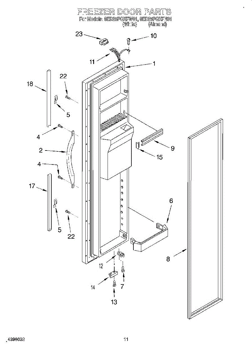 The Freezer Door Gasket is an OEM replacement part for Whirlpool refrigerators. It creates a tight insulating seal around the perimeter of the freezer door opening. The gasket helps maintain consistent sub-freezing temperatures inside by preventing cold air loss. Causes relate to natural compression fatigue over time, cracks developing with use, or accidental slicing/tears from sharp edges within the freezer. Symptoms of a compromised gasket include: