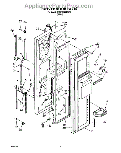 Parts for Whirlpool 8ED27RQXXW01: 08 - Freezer Door Parts