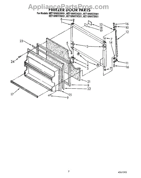 Parts for Whirlpool 8ET18NKXXW01: 06 - Freezer Door Parts