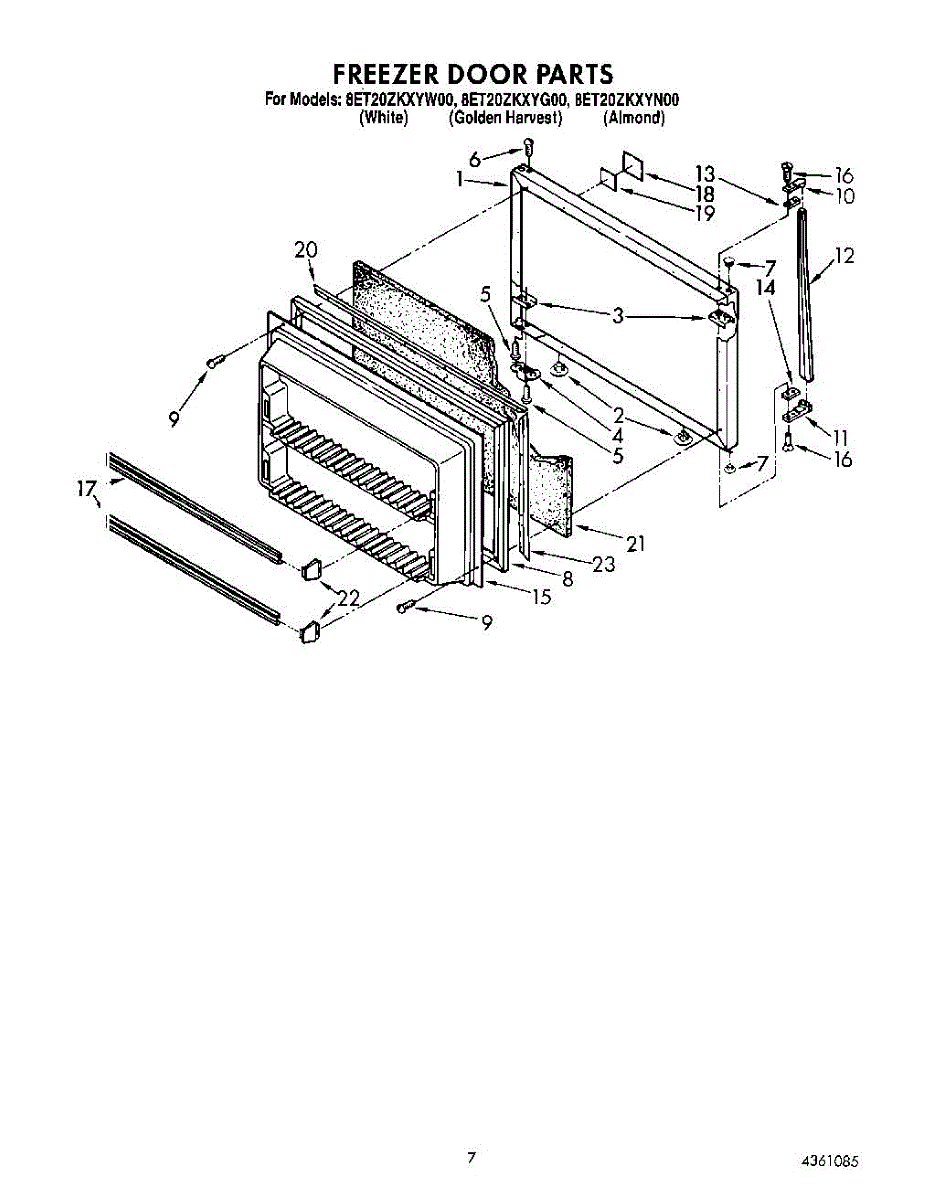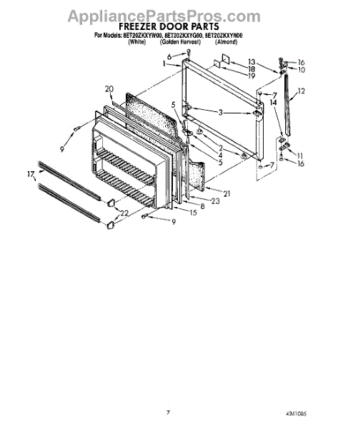 This freezer door gasket seals the door to the cabinet to keep cold air in and humid air out. Replacing a worn gasket restores a proper seal, helping maintain temperature and reducing frost and condensation around the door.