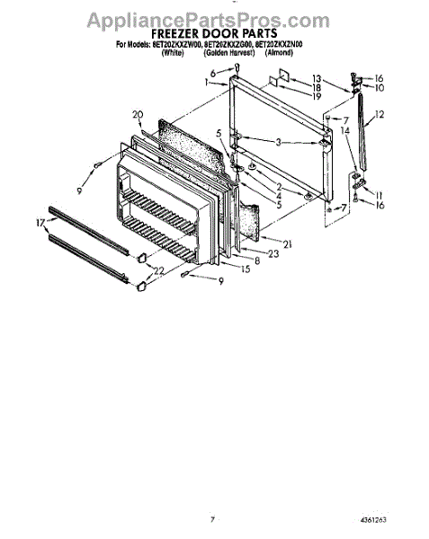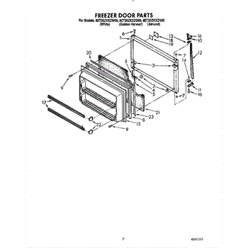 This freezer door gasket seals the door to the cabinet to keep cold air in and humid air out. Replacing a worn gasket restores a proper seal, helping maintain temperature and reducing frost and condensation around the door.