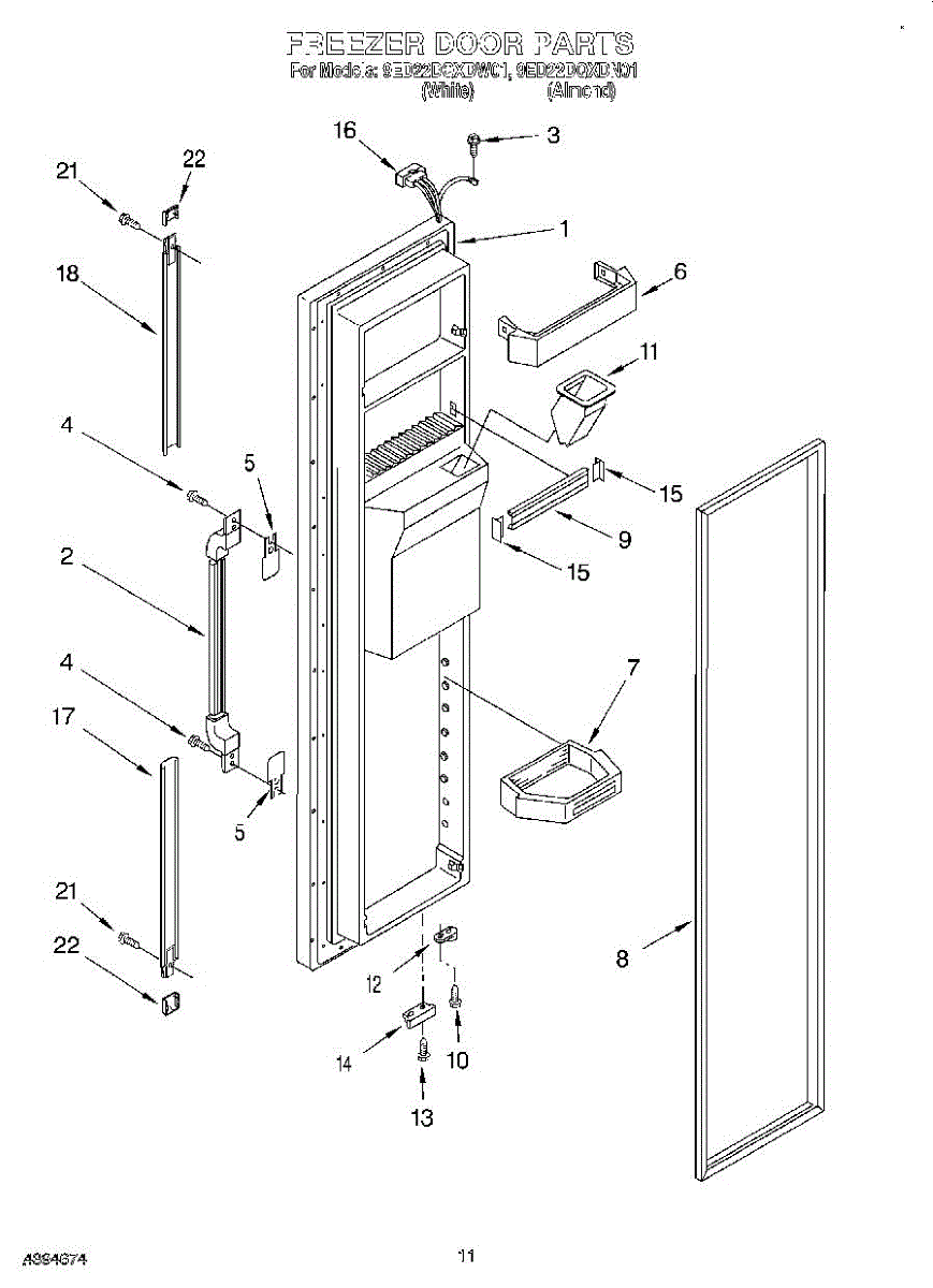 Parts for Whirlpool 9ED22DQXDN01: 08 - Freezer Door Parts