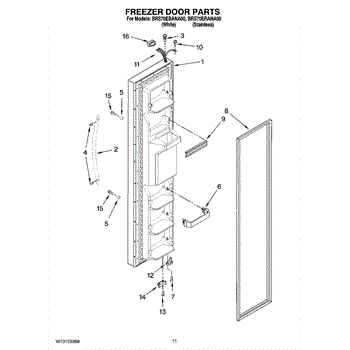 The Freezer Door Gasket is an OEM replacement part for Whirlpool refrigerators. It creates a tight insulating seal around the perimeter of the freezer door opening. The gasket helps maintain consistent sub-freezing temperatures inside by preventing cold air loss. Causes relate to natural compression fatigue over time, cracks developing with use, or accidental slicing/tears from sharp edges within the freezer. Symptoms of a compromised gasket include:
