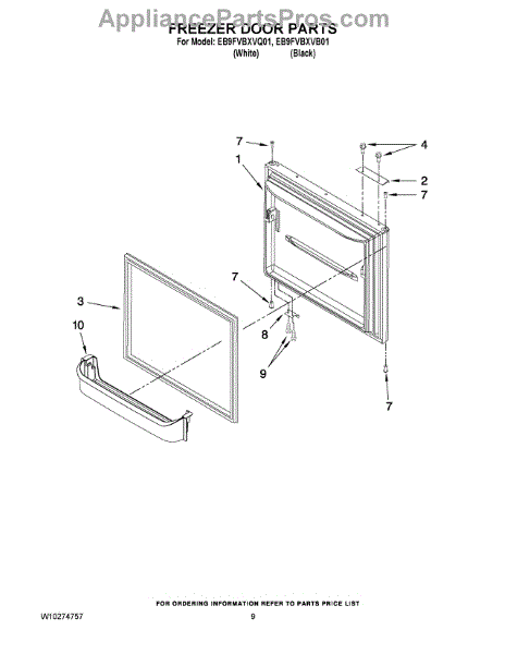 Note: For the right side drawer glide, use part number WP67001053