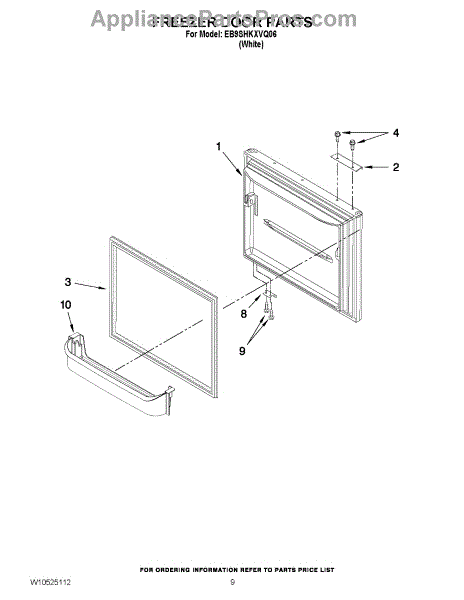 Parts for Whirlpool EB9SHKXVQ06: 05 - Freezer Door Parts
