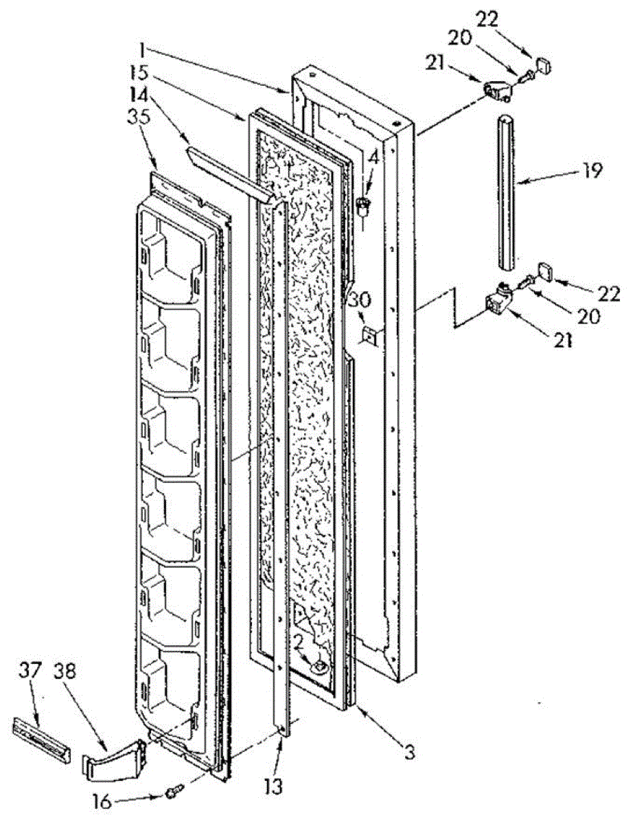 Parts for Whirlpool ED19SKXRMR1: Freezer Door Parts