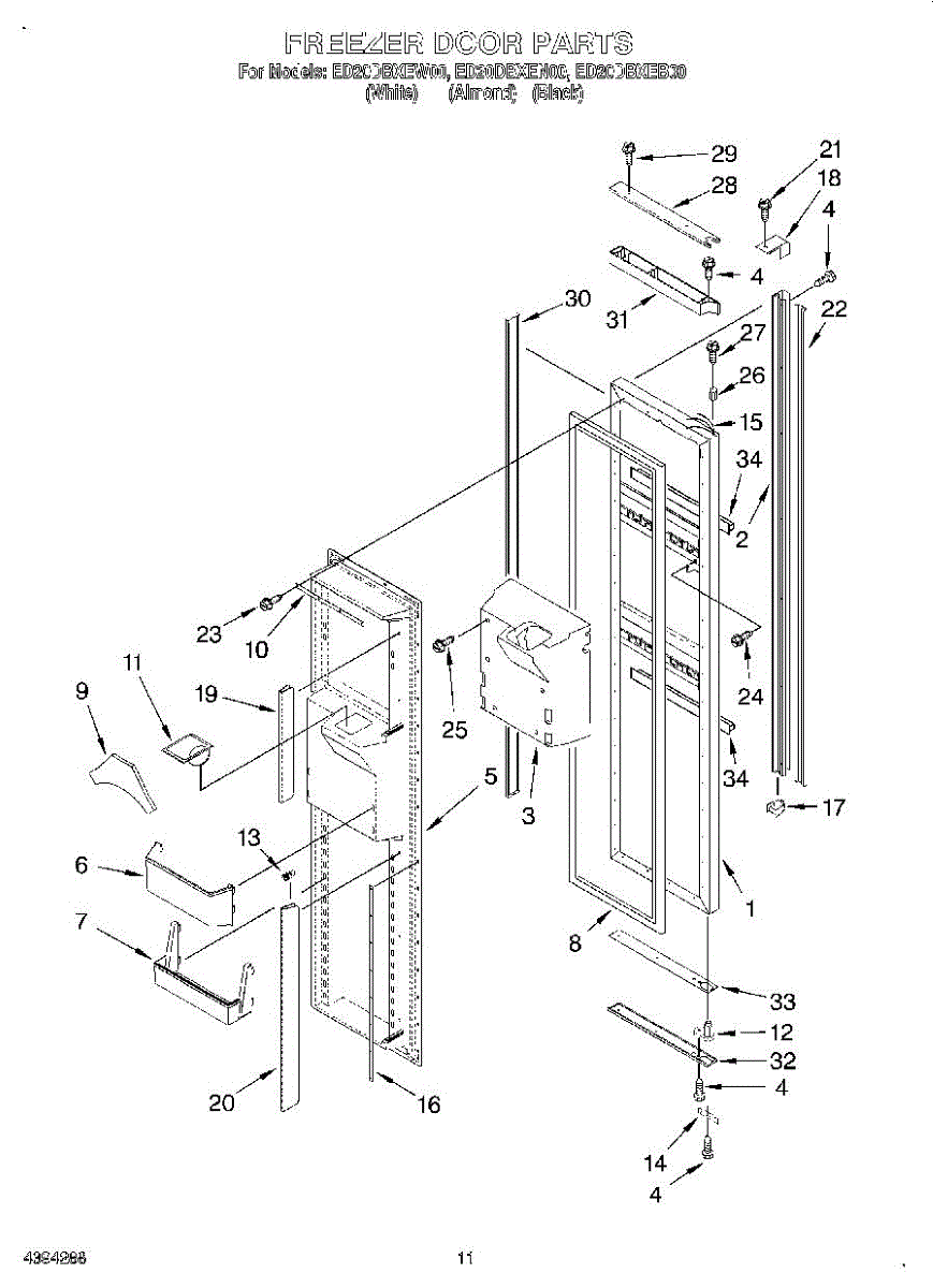 Cam kit for refrigerator door hinges. Includes black and white cams that install at door bottom and hinge. Replace when cracked, broken, or worn.