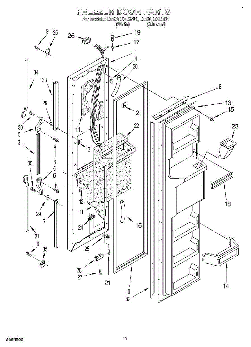 This freezer door gasket creates a tight seal around the door to keep cold air in and humid air out. Replacing a worn gasket restores proper temperature control, reduces frost, and helps the door close and seal correctly.