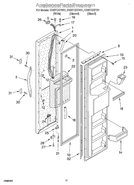 Parts for Whirlpool ED20TQXFW01: 07 - Freezer Door Parts