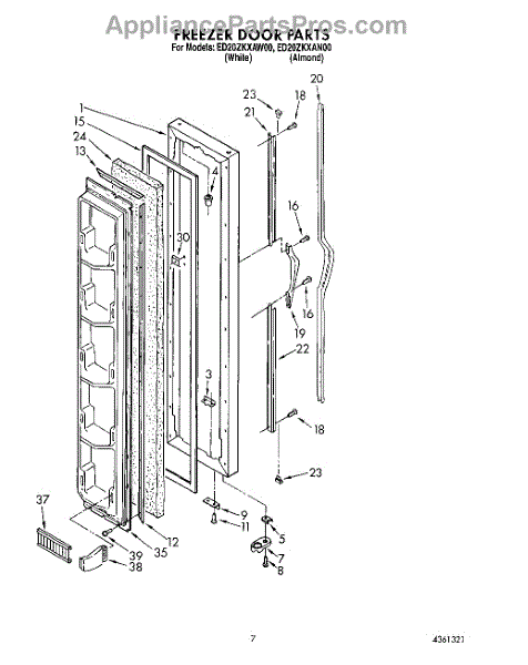 Parts for Whirlpool ED20ZKXAW00: 05 - Freezer Door Parts