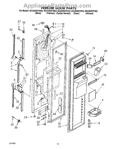 Parts for Whirlpool ED22DWXTN02: 08 - Freezer Door Parts