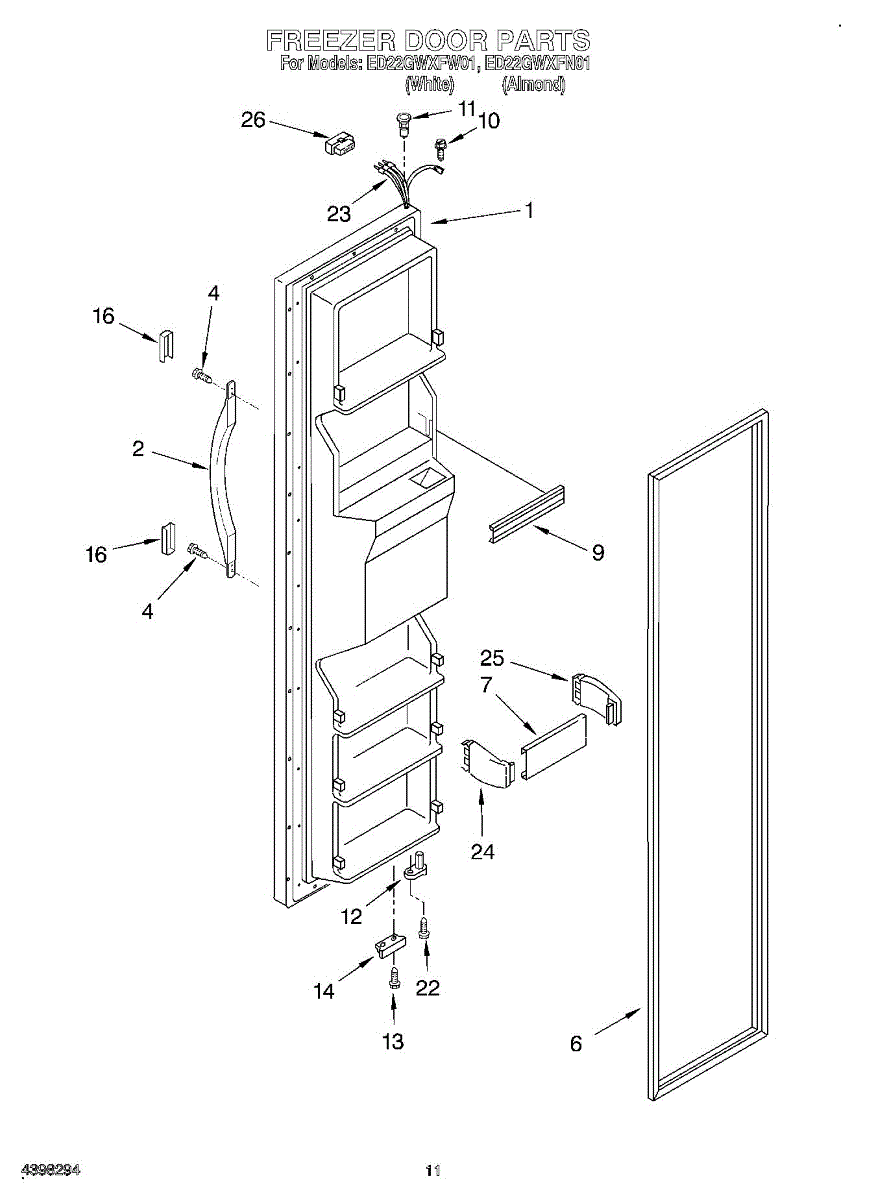 Parts for Whirlpool ED22GWXFW01: 08 - Freezer Door Parts