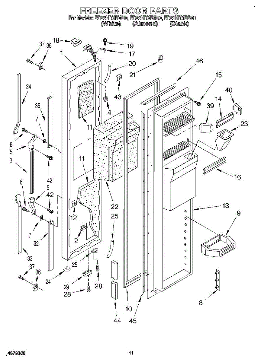This freezer door gasket creates a tight seal around the door to keep cold air in and humid air out. Replacing a worn gasket restores proper temperature control, reduces frost, and helps the door close and seal correctly.
