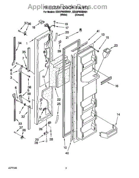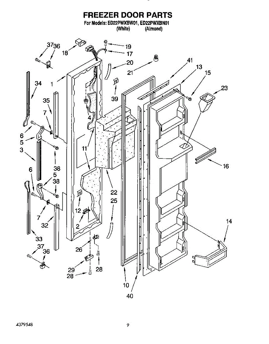 Parts for Whirlpool ED22PWXBW01: 07 - Freezer Door Parts