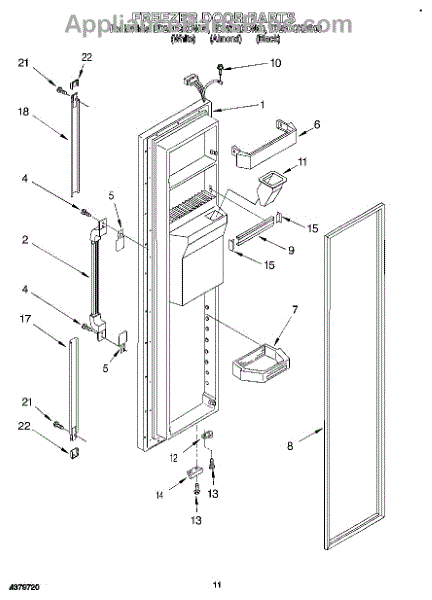 Parts for Whirlpool ED25DQXDB00: 07 - Freezer Door Parts