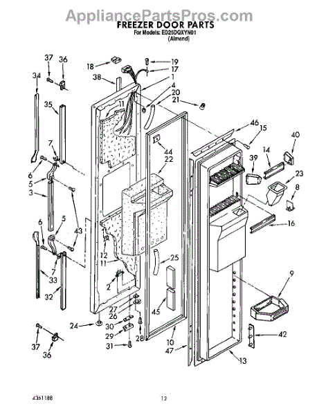 Parts for Whirlpool ED25DQXYN01: 08 - Freezer Door Parts
