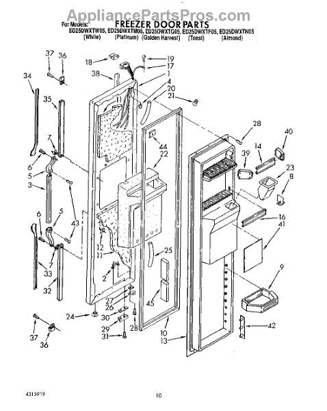 Parts for Whirlpool ED25DWXTW05: 08 - Freezer Door Parts