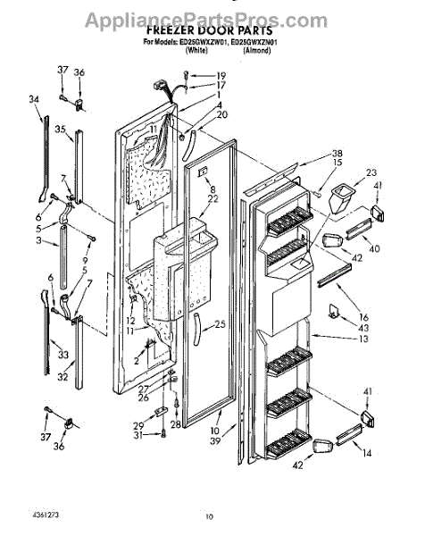 Parts for Whirlpool ED25GWXZW01: 08 - Freezer Door Parts