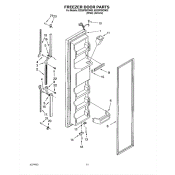 The Freezer Door Gasket is an OEM replacement part for Whirlpool refrigerators. It creates a tight insulating seal around the perimeter of the freezer door opening. The gasket helps maintain consistent sub-freezing temperatures inside by preventing cold air loss. Causes relate to natural compression fatigue over time, cracks developing with use, or accidental slicing/tears from sharp edges within the freezer. Symptoms of a compromised gasket include: