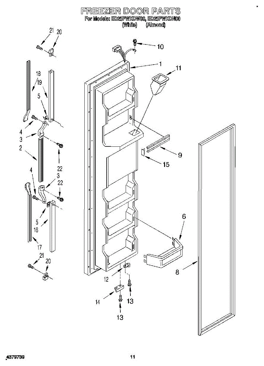 Parts for Whirlpool ED25PWXDW00: 07 - Freezer Door Parts