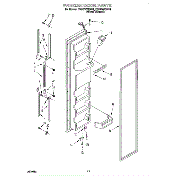 The Freezer Door Gasket is an OEM replacement part for Whirlpool refrigerators. It creates a tight insulating seal around the perimeter of the freezer door opening. The gasket helps maintain consistent sub-freezing temperatures inside by preventing cold air loss. Causes relate to natural compression fatigue over time, cracks developing with use, or accidental slicing/tears from sharp edges within the freezer. Symptoms of a compromised gasket include: