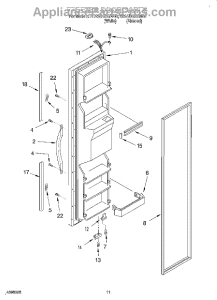 White upper handle trim cover for refrigerator doors. Replaces cracked, broken, discolored, or missing trim pieces. Slides on for easy installation.