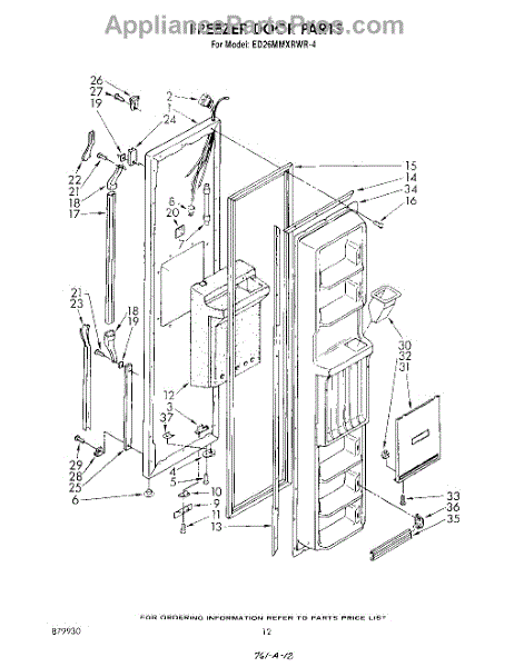 Parts for Whirlpool ED26MMXRWR4: 07 - Freezer Door Parts