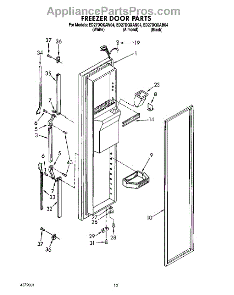 Parts for Whirlpool ED27DQXAN04: 07 - Freezer Door Parts