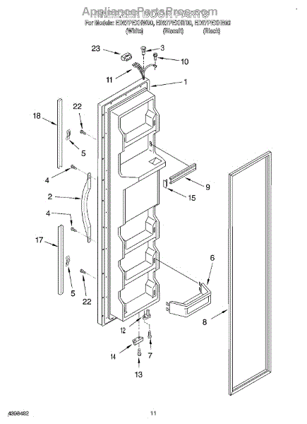 The Freezer Door Gasket is an OEM replacement part for Whirlpool refrigerators. It creates a tight insulating seal around the perimeter of the freezer door opening. The gasket helps maintain consistent sub-freezing temperatures inside by preventing cold air loss. Causes relate to natural compression fatigue over time, cracks developing with use, or accidental slicing/tears from sharp edges within the freezer. Symptoms of a compromised gasket include: