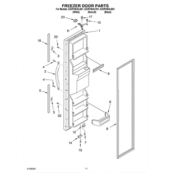 Parts for Whirlpool ED2FHEXLQ01: 07 - Freezer Door Parts