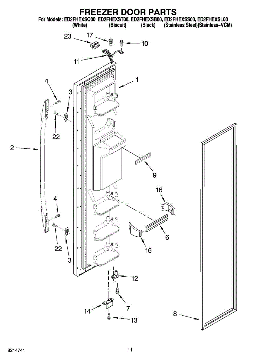 Seals your refrigerator freezer door to prevent air leaks and maintain temperature. Replace if door pops open, feels loose, or shows visible damage.