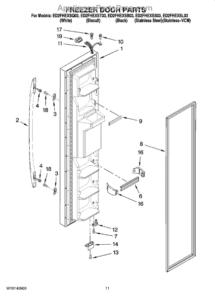 Parts for Whirlpool ED2FHEXST03: 07 - Freezer Door Parts