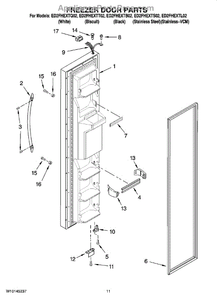 Parts for Whirlpool ED2FHEXTQ02: 07 - Freezer Door Parts