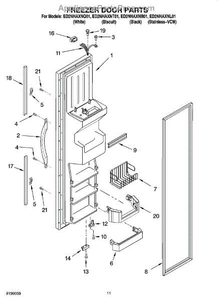 Parts for Whirlpool ED2NHAXNB01: 07 - Freezer Door Parts