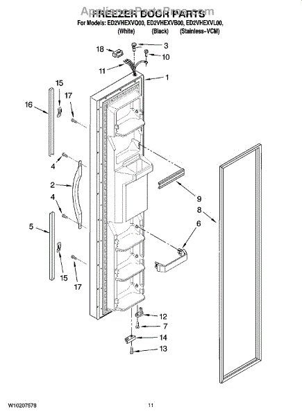 Parts for Whirlpool ED2VHEXVL00: 07 - Freezer Door Parts