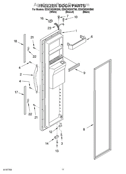 Parts for Whirlpool ED5CHQXKB00: 07 - Freezer Door Parts