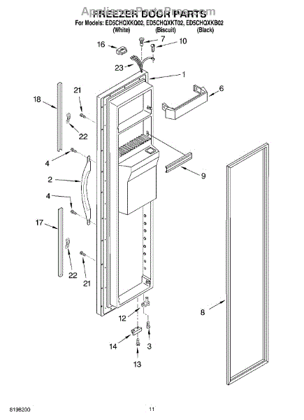 Parts for Whirlpool ED5CHQXKQ02: 07 - Freezer Door Parts
