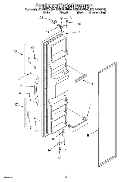 Parts for Whirlpool ED5FHEXMB00: 07 - Freezer Door Parts